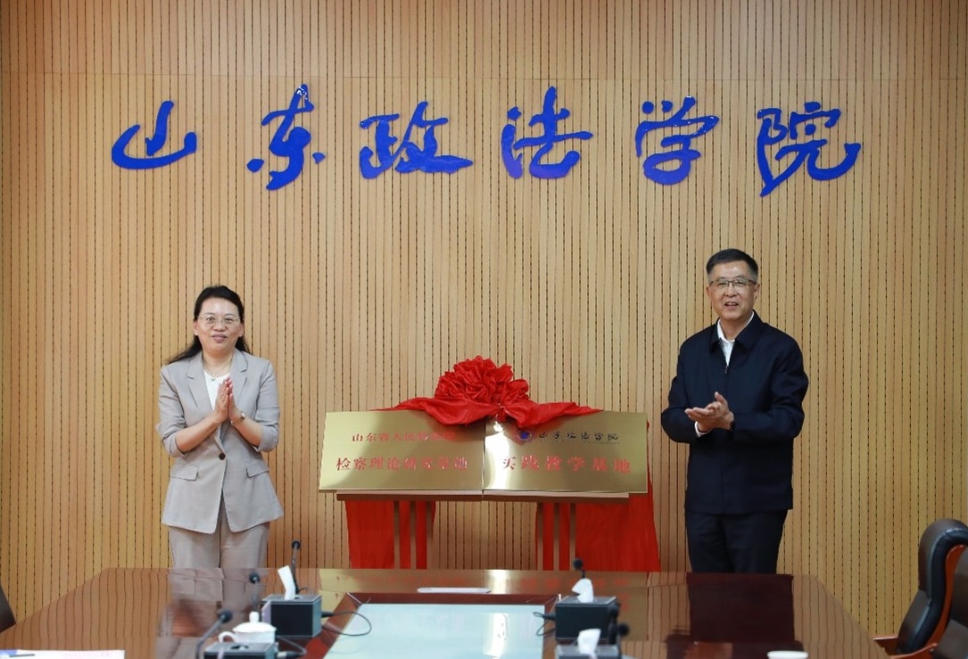 仪式上,于玉和张祥云共同为山东省人民检察院检察理论研究基地、山东政法学院实践教学基地揭牌。