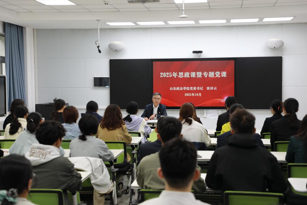 为深入做好青年学生的思想政治工作,扎实落实立德树人根本任务,增强基层党组织政治功能和组织功能,落实领导干部联系新生班级和基层党建工作联系点制度,10月15日,山东政法学院党委书记张祥云走进所联系的民商法学院2025级调解法治实验班和学生第一党支部讲授思政课暨专题党课。