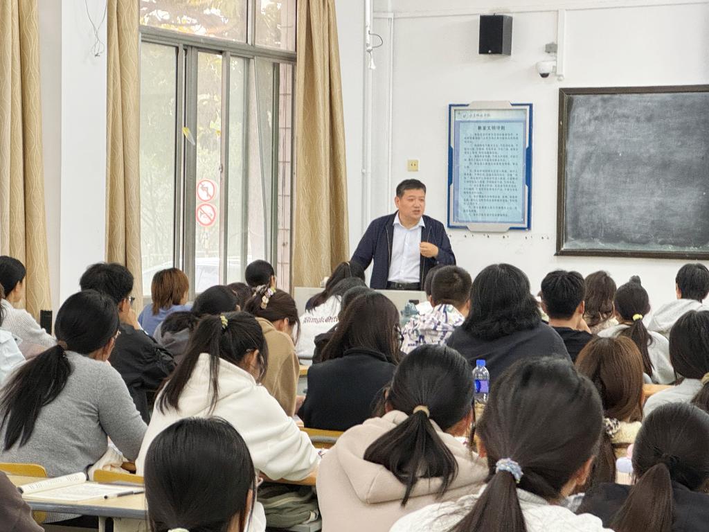 学校领导为商学院新生班级讲授思政课