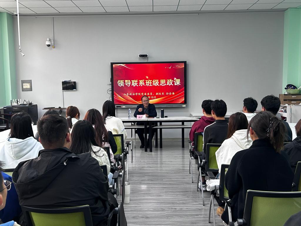 近日,山东政法学院党委委员、副校长孙会海与外国语学院2025级法律英语1班新生进行座谈交流并开展思政课活动。