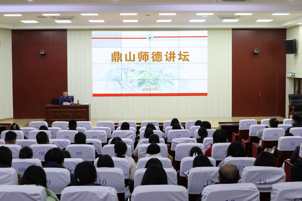 活动第二阶段为鼎山师德讲坛,特邀学校档案科付晓利老师作校史专题报告。付晓利以《足迹》为题,系统回顾了学校建校早期克服困难、砥砺前行的奋斗历程,通过鲜活的人物事迹与珍贵的历史片段,生动呈现了老一辈教育工作者在艰苦条件下坚守理想、开拓进取的师者风范。讲述感人至深,引发了在场师生对学校发展历程与精神传承的深切共鸣。
