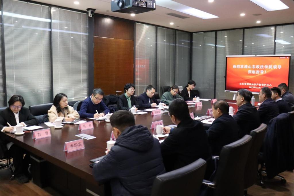近日,山东政法学院党委委员、副院长胡晓清带队赴山东省国家知识产权保护中心开展战略合作活动。活动以“协同创新·共育人才——深化知识产权产教融合”为主题。山东省市场监督管理局党组成员、副局长于智勇出席活动。