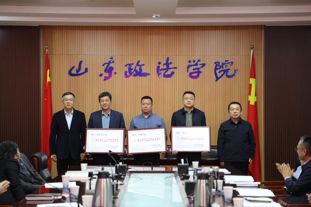 会上,张祥云、王效彤共同为2025年毕业生就业工作先进单位、2025年创新创业工作先进单位颁奖,并与研究生处和二级学院代表签订《2026年毕业生就业工作目标责任书》。党委副书记赵斌宣读了《关于表彰2025年毕业生就业工作先进单位及先进个人的通报》《关于表彰2025年创新创业工作先进单位及先进个人的通报》;党委委员、副院长蒋海升宣读了《山东政法学院2026年毕业生就业工作实施方案》并布置重点工作任务。