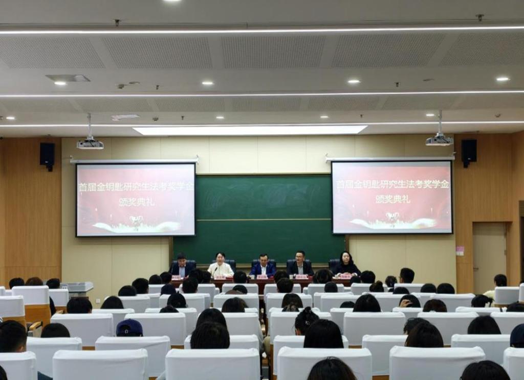 会上宣读了“首届金钥匙研究生法考奖学金”表彰决定,获奖同学依次上台领奖。2023级非法学2班霍延东同学作为获奖学生代表发言。